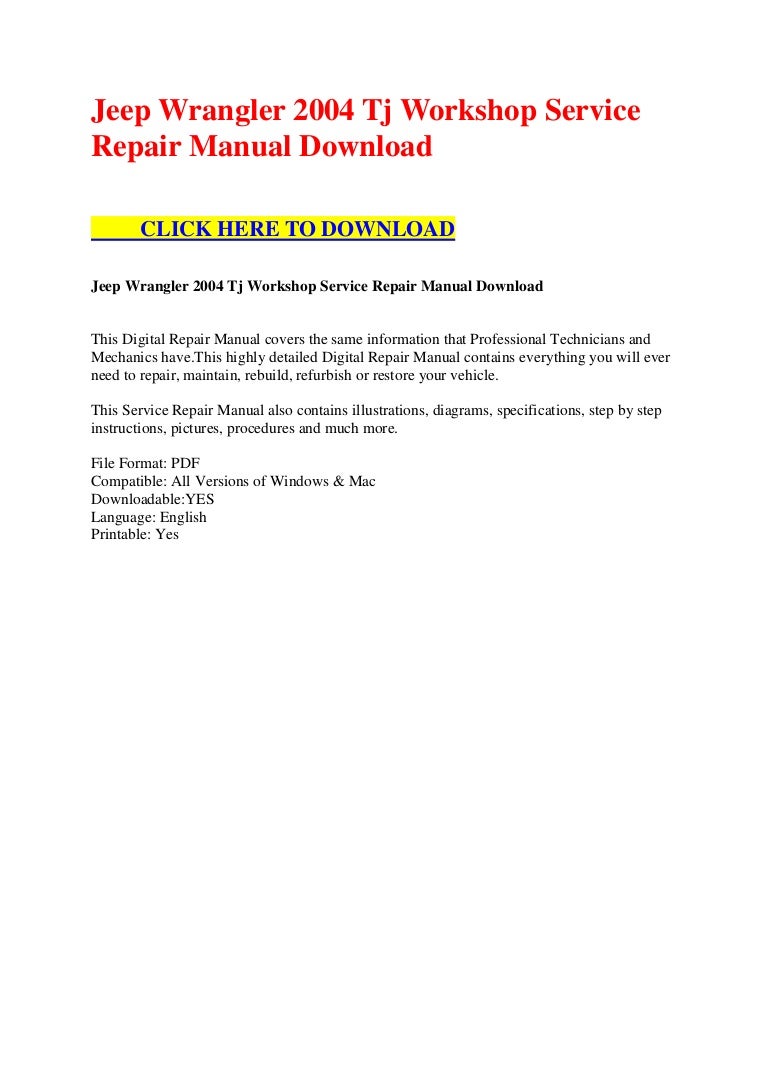 Jeep wrangler 2004 tj workshop service repair manual download